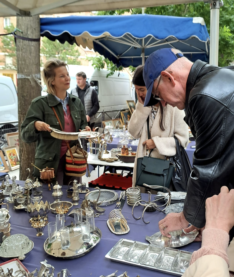 The month of June began with an exclusive guided tour of the Porte de Vanves flea market led by the renowned artistic tablescape designer Cecilia Fiorini, who introduced members to the elegant world of Parisian and Roman “arts de la table.” As they hunted for rare block-printed fabrics, beautifully embroidered linens, timeless rattan and bamboo furniture, and vintage cutlery and silverware, our members discovered the charm of the Parisian “puces”.
