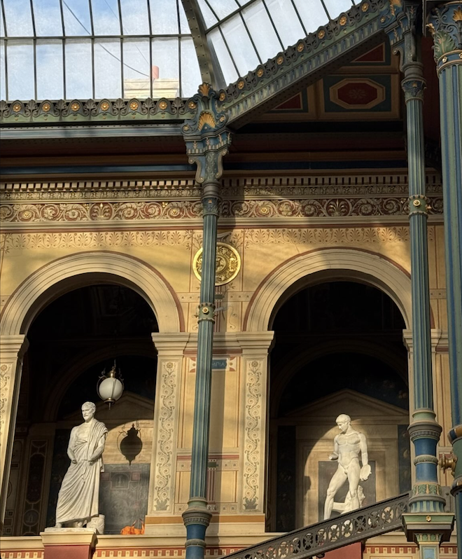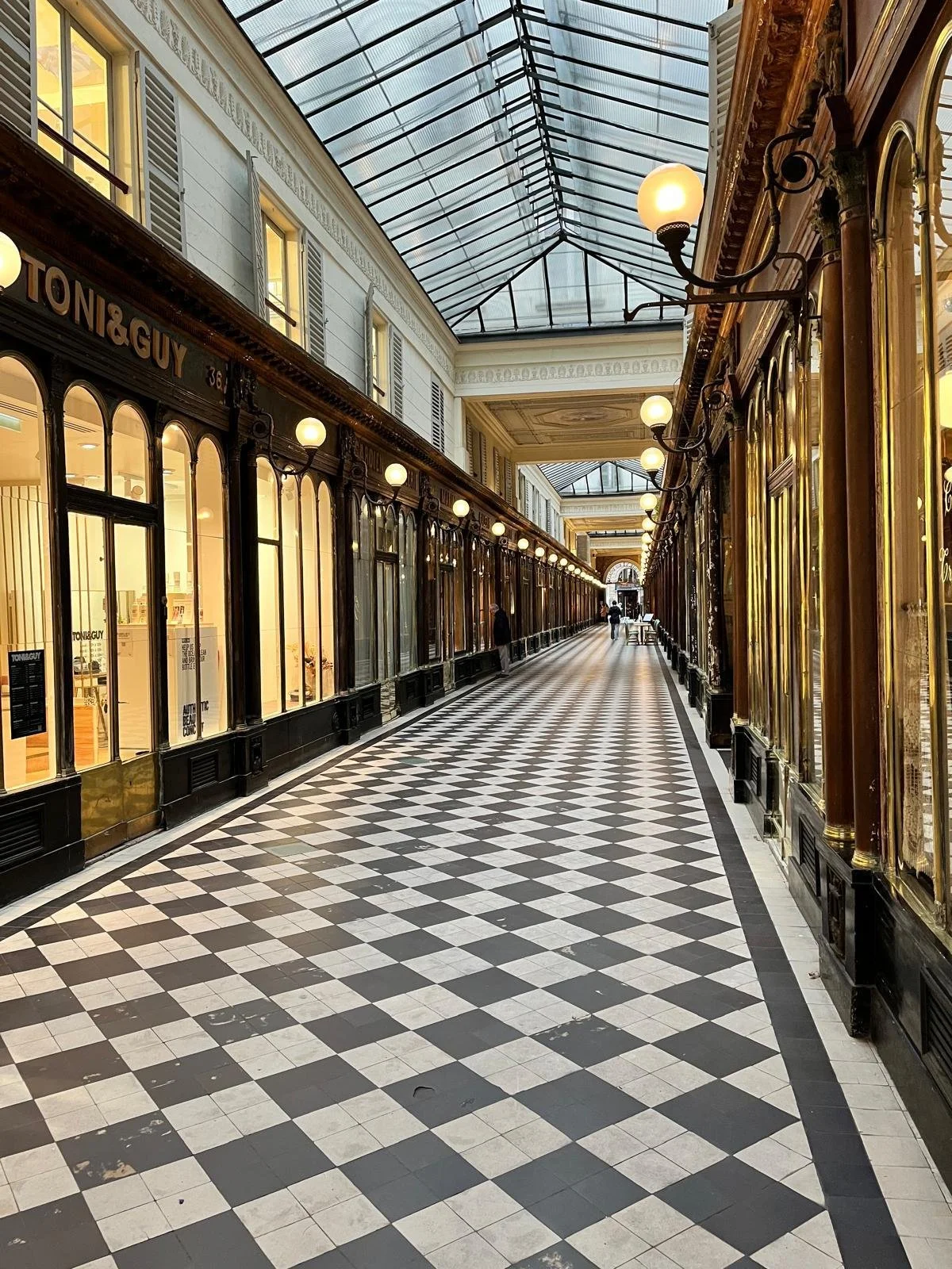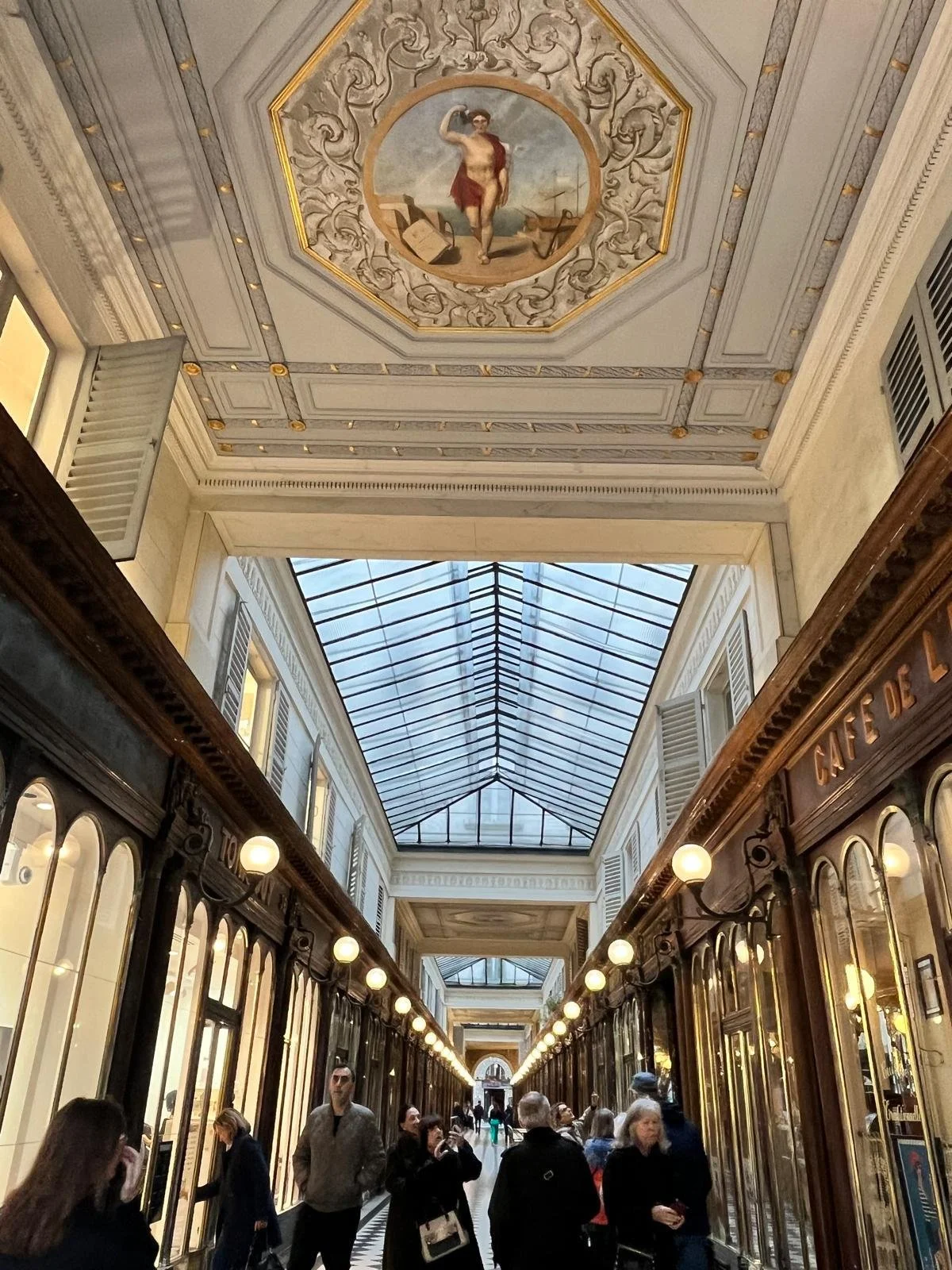 AFMO’s autumn program kicked off with a walk through the Passage Couverts, guided by art historian Ingrid Held. Paris’s passages couverts (covered passages) emerged in the late 18th century as sheltered commercial spaces amid urban growth. These arcades provided refuge from unpredictable weather and chaotic streets, showcasing unique architectural treasures. Initially narrow corridors lined with shops, they evolved into elaborate arcades with mosaic floors, stained glass domes, and wrought iron gates.