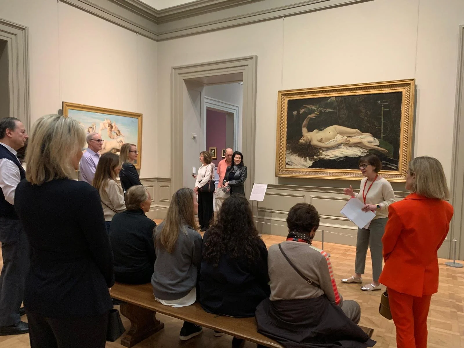 In New York City, a private tour was organised of the Metropolitan Museum of Art’s collection of 19th century European Paintings, highlighting Gustave Courbet, led by Kathryn Calley Galitz, art historian and curator. This was done in anticipation of the restoration of Gustave Courbet’s masterpiece, “Un enterrement à Ornans”, at the Musée d’Orsay.